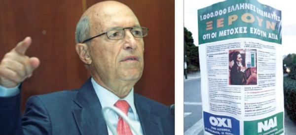 Κάπως έτσι στήθηκε το μεγάλο κόλπο, χωρίς… ένοχο. Οι μάσκες έπεσαν όταν ο Σημίτης μετά τις εκλογές του 2000 (και μέσα στη μέθη της νίκης του) δήλωσε για όσους έχασαν τα λεφτά τους «ας πρόσεχαν…». Στο εδώλιο δεν κάθισε ποτέ. Γλίτωσε. Ομως στη συνείδηση του μέσου Ελληνα είναι ένοχος.