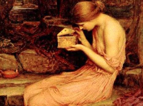 Το αντίβαρο της θεϊκής δωρεάς, της φωτιάς, ήταν ακόμη ένα «δώρο» στους θνητούς. Ο Ζευς διέταξε την κατασκευή του ομοιώματος μιας νέας καλλίγραμμης κόρης, με πρόσωπο θεϊκό, προκειμένου να αφυπνίζει τον πόθο. Το ομοίωμα εκόσμησαν με ζώνη και απαστράπτοντα χιτώνα και του εδίδαξαν να υφαίνει, ενώ η Αφροδίτη το επροίκισε με σπάνια ομορφιά και λάμψη. Οι Χάριτες και η Πειθώ τον λαιμό στόλισαν χρυσά στολίδια και οι Ωρες στεφάνωσαν την πανέμορφη κόρη με άνθη του έαρος. Διέταξαν τον Ερμή να φυτέψει στο στήθος ψεύδη και κολακείες και απάτες ή, σύμφωνα με τον Ησίοδο, αναισχυντία και δολιότητα.