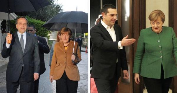 Ηταν Απρίλιος του 2014, λίγους μήνες πριν ο Αντώνης Σαμαράς χάσει πρόωρα την εξουσία, εξαιτίας και της σαφέστατης παρέμβασης της Γερμανίας που του τράβηξε το χαλί αφού δεν του έδινε ούτε ευρώ από τις δόσεις των δανείων. Ο απελπισμένος Αντώνης που κατέρρεε (μετά τη μνημονιακή κωλοτούμπα και τα τραγικά λάθη του) διέπραττε το τελευταίο, αλλά καθοριστικό φάουλ. Υποδεχόταν τη Μέρκελ με δόξα και τιμή πιστεύοντας ανοήτως ότι η επίσκεψή της θα του έκανε καλό. Τότε η σιδηρά καγκελάριος δήλωνε από το Μέγαρο Μαξίμου «συγχαρητήρια στην Ελλάδα, η εμπιστοσύνη επέστρεψε» και ο Σαμαράς χαμογελούσε νομίζοντας ότι έκανε το μεγάλο κόλπο… Τι συνέβη, όμως, στη συνέχεια το γνωρίζουν οι πάντες.