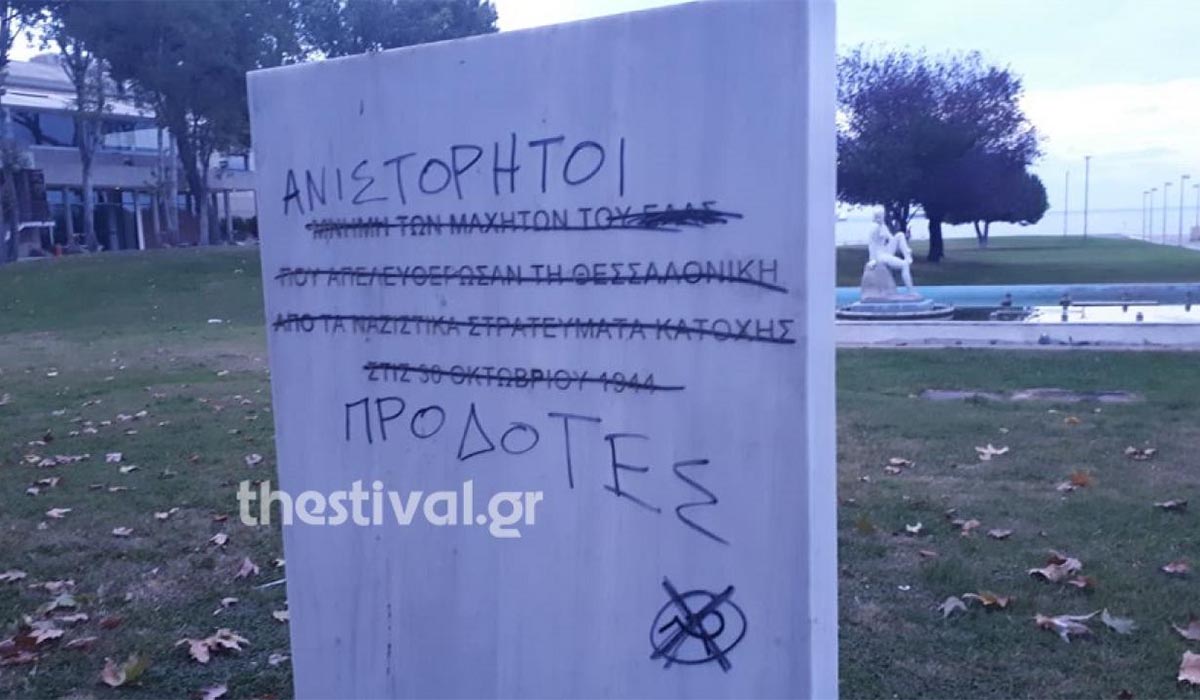 Αυτές τις μέρες, διάφορα φασισταριά της Θεσσαλονίκης, όπως καθηγητές πανεπιστημίου, γιατροί, δικηγόροι, απόστρατοι αξιωματικοί, επιχειρηματίες, απλοί πολίτες, διακινούν μία επιστολή για συλλογή υπογραφών, με σκοπό να ξηλωθεί ή να αλλάξει το κείμενο σε μία αναθηματική πλάκα, που έχει τοποθετήσει ο αλήστου μνήμης Μπουτάρης, χωρίς μάλιστα να υπάρχει σχετική απόφαση του Δημοτικού Συμβουλίου. Δημοκρατικά πράγματα…