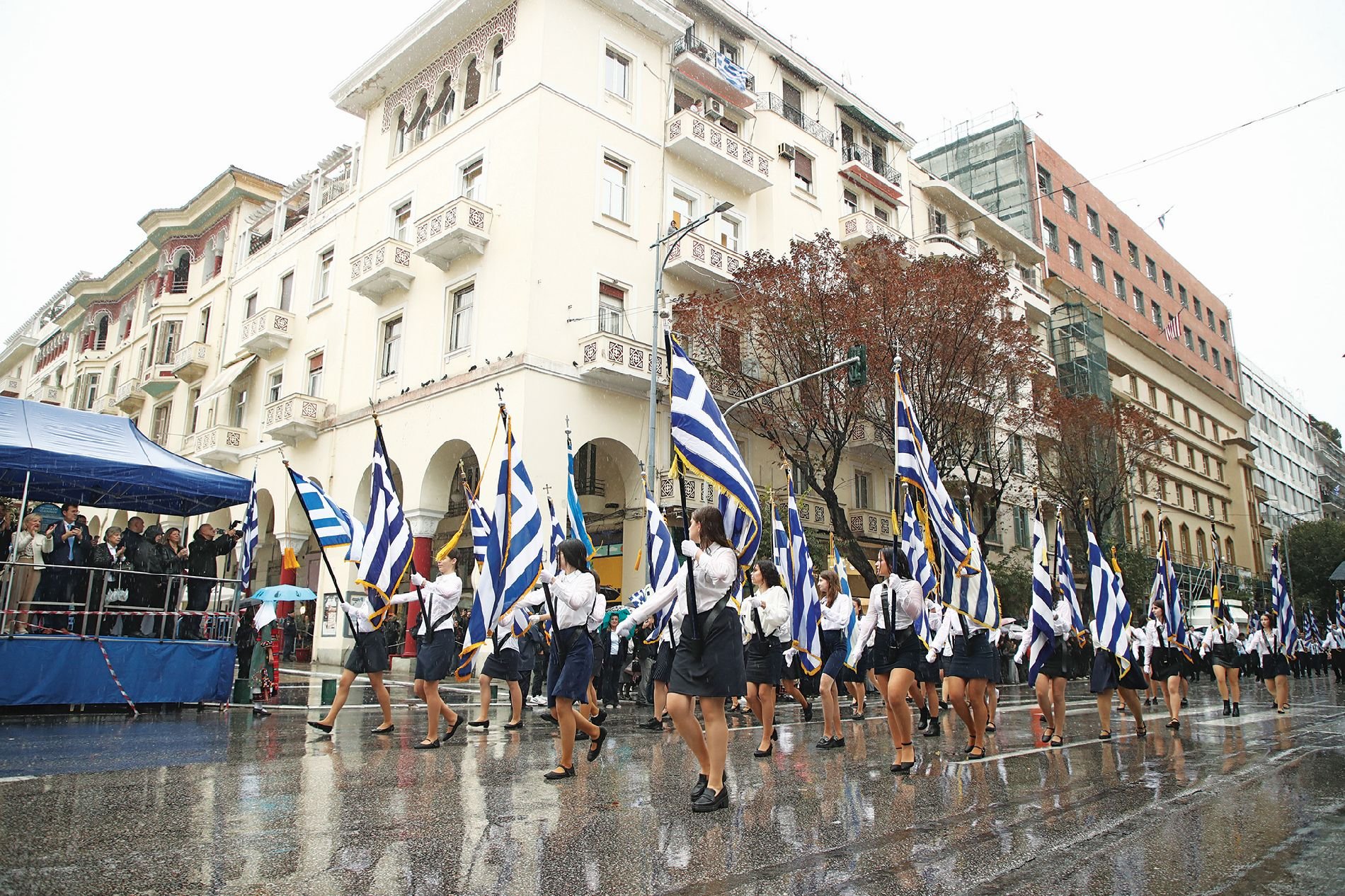 Τα πέλματα των παιδιών βούλιαζαν μέσα στις μικρές λακκούβες νερού στην οδό Τσιμισκή και τα χέρια τους κρατούσαν παγωμένα τις σημαίες. Αλλά στα μάτια τους έλαμπε η συνείδηση της ευθύνης και τους χρέους. Δεν βάδιζαν μόνο για να τιμήσουν την επέτειο της απελευθέρωσης της πρωτεύουσας της Μακεδονίας μας, αλλά για να αποδείξουν ότι η Ιστορία δεν είναι μόνο παρελθόν, αλλά και παρόν που μας ζητά να το κουβαλήσουμε με θάρρος στο μέλλον. Κι όσο οι στολές μούσκευαν και βάραιναν, τόσο τα πρόσωπα άστραφταν, λες και η βροχή δυνάμωνε το φως τους. Ηταν σαν να έβγαιναν μέσα από παλιές φωτογραφίες του 1940, δίπλα στους τότε νέους που υπερασπίστηκαν την ίδια γη και τις ίδιες αξίες. Οι καιροί άλλαξαν, αλλά το φρόνημα έμεινε το ίδιο. Και εκείνη την ημέρα η Θεσσαλονίκη είδε πως το φρόνημα αυτό δεν έχει χαθεί.