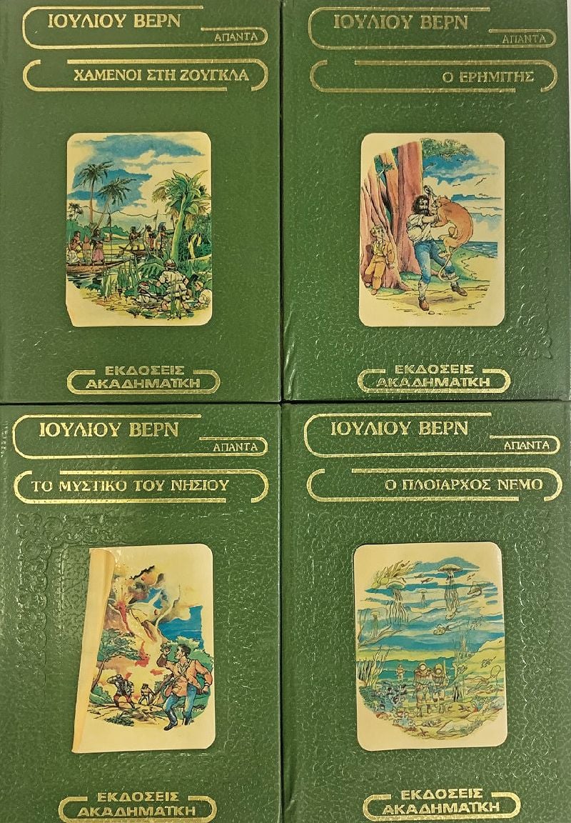 • Ο Ιούλιος Βερν (1828-1905) ήταν ένας Γάλλος «προφήτης» της τεχνολογικής εξέλιξης και φλογερός φιλέλληνας. Το βιβλίο του «Αρχιπέλαγος στις φλόγες» είναι εμπνευσμένο από την Επανάσταση του 1821. Στα δημιουργήματά του περιλαμβάνονται έξοχα μυθιστορήματα όπως «Ταξίδι στο κέντρο της Γης», «20.000 λεύγες κάτω από τη θάλασσα», «Ο γύρος του κόσμου σε 80 ημέρες» κ.ά. Ωραία έκδοση ήταν εκείνη των απάντων του από την Ακαδημαϊκή.