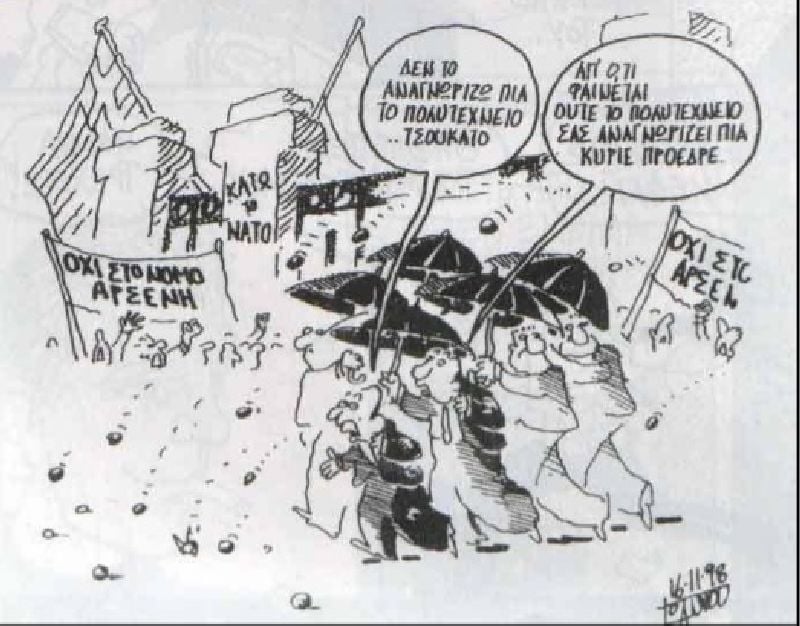 Αυτά τα ολίγα για εφέτος. Προσεχώς καλύτερα, που έλεγε και ο Χατζηχρήστος, στη «Κακομοίρα» του. Χρόνια πολλά για το πολυτεχνείο και καλές δουλειές στους σουβλατζήδες και στα μαλλιά της γριάς, γιατί όπως είπε και ο ποιητής, ξελιγωθήκαμε από την συγκίνηση.