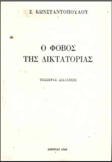 Βέβαια η εγκυκλοπαίδεια δημοκρατικότατα (!!!) αποφεύγει να αναφερθεί στις 4 διαλέξεις του Χίλτον με τον γενικό τίτλο «Ο φόβος της δικτατορίας». Οι διαλέξεις αυτές, που αποτελούν ένα εξόχως πολιτικό κείμενο και καλό θα ήταν να ψάξετε να το βρείτε, έγιναν τον Μάρτιο του 1966. Ο Σάββας Κωνσταντόπουλος, αφού αναφέρεται στην τότε σχεδόν άναρχη πολιτική κατάσταση, επισημαίνει τον κίνδυνο δικτατορίας. Μάλιστα ο τότε Αρχηγός της ΕΡΕ Παναγιώτης Κανελλόπουλος, σε μακροσκελή επιστολή του είχε γράψει, μεταξύ πολλών άλλων: «…διαπραγματευτήκατε το θέμα με τρόπον διαλεκτικά και ψυχολογικά άρτιον». Ουδείς άκουσε τον Σάββα Κωνσταντόπουλο και ένα χρόνο μετά ήρθε η 21 η Απριλίου…