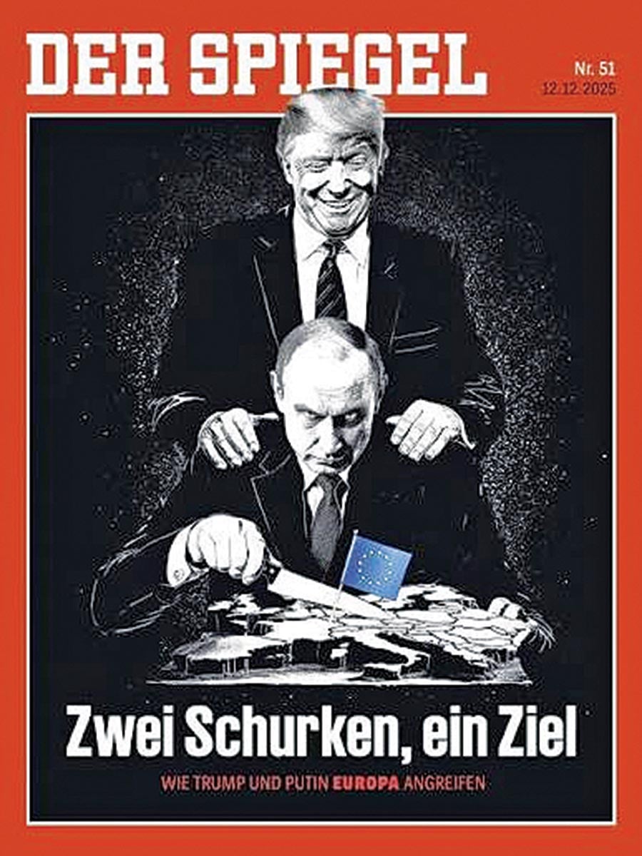 Πάνω σε αυτή την απειλή, όπως θα δούμε την επόμενη Κυριακή, φρόντισε να στήσει όχι μόνο το οικονομικό της comeback, αλλά και τις γεωπολιτικές φιλοδοξίες ενός πολυεθνικού αχταρμά (Δ΄ Ράιχ, σύμφωνα με άλλους), όπου στο τέλος… όλοι θα μιλούν γερμανικά. Ο Τραμπ εμποδίζει προς το παρόν αυτές τις φιλοδοξίες. Λογικό είναι λοιπόν το «Spiegel» να τον υβρίζει ως κάθαρμα, επειδή επιδιώκει την ειρήνη. Ολοι οι υπόλοιποι, οι έχοντες σώας τας φρένας Ευρωπαίοι, κάνουμε τον σταυρό μας που υπάρχει ο Τραμπ και δεν έχουμε φτάσει ακόμη στον Γ’ Παγκόσμιο…