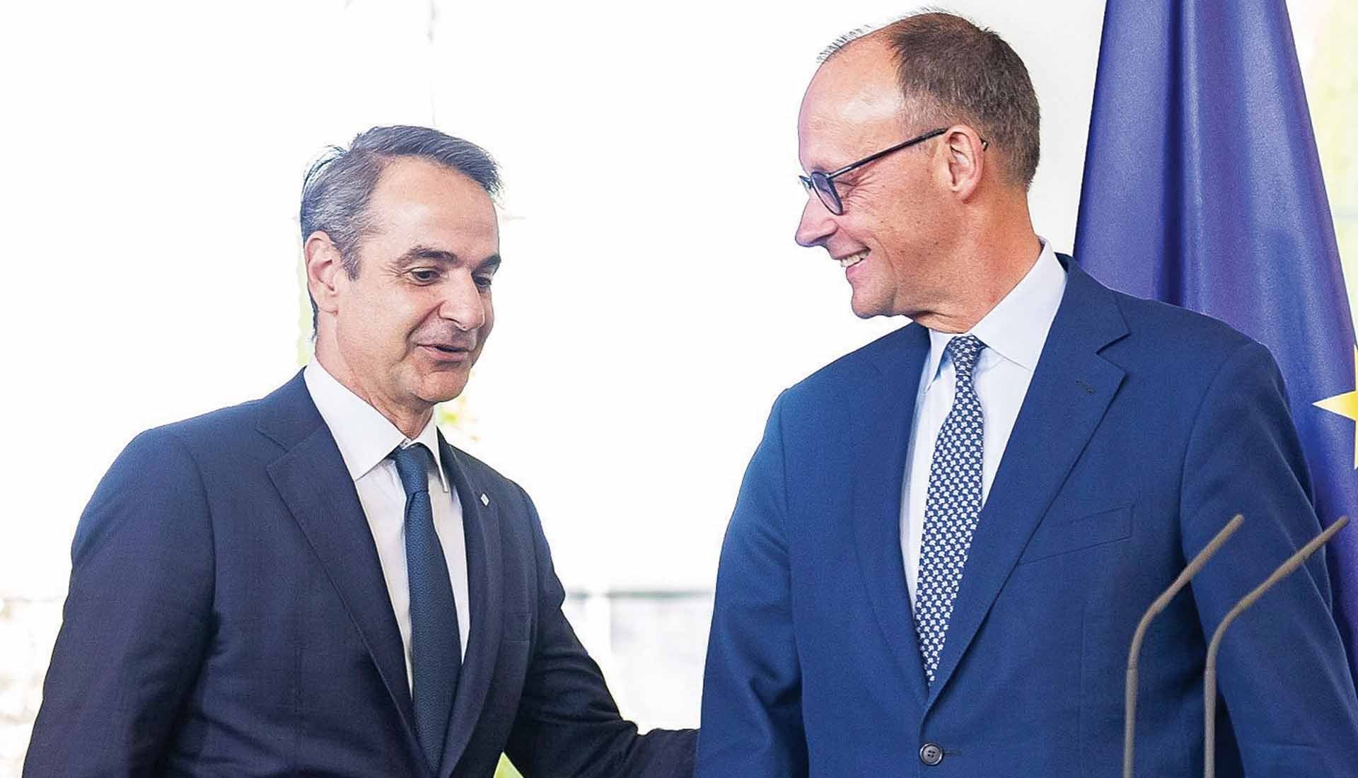 Συμπεριλαμβανομένου του υπουργού Εξωτερικών Χακάν Φιντάν, για τον οποίον λέγεται πως το Βερολίνο έχει μεγάλη εκτίμηση και ακόμα μεγαλύτερες προσδοκίες σχετικά με τον περιορισμό της Μόσχας. Κατόπιν αυτών, είναι χαρακτηριστικό ότι η ελληνική πλευρά αρχικά δεν διαμαρτυρήθηκε για τη συμφωνία πώλησης των Eurofighter στην Τουρκία και, στη συνέχεια, «ξέχασε» και το ζήτημα των πυραύλων Meteor που όντως είχε θέσει ο κ. Μητσοτάκης στον κ. Μερτς κατά την πρώτη συνάντησή τους τον περασμένο Μάιο. Επιπλέον, το Βερολίνο παρεμβαίνει έντονα στο ελληνικό εξοπλιστικό πρόγραμμα, αποδεικνύοντας ότι δεν αρκούν στον κ. Μερτς όσα του είχε υποσχεθεί ο πρωθυπουργός στην ίδια συνάντηση (εκσυγχρονισμός των υποβρυχίων τύπου 214, επέκταση συνεργασίας στα άρματα μάχης Leopard κ.λπ.).