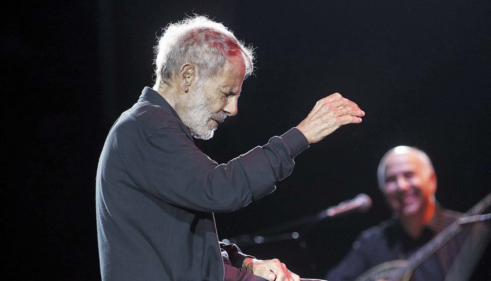Φορούσε ένα σκούρο πουλόβερ, τέλη Οκτωβρίου είχε αρχίσει να βάζει ψύχρα στο νησί μας, αλλά τα μάτια του έλαμπαν. Πρόλαβα να τον ρωτήσω πώς γράφεται μια σύνθεση: «Αλλες φορές σε πάνε οι στίχοι, όπως στην “Υπομονή”, άλλες φορές η έμπνευση. Δεν υπάρχει μία απάντηση» αποκρίθηκε. Εκείνες τις μέρες κυριαρχούσε στην επικαιρότητα το θέμα του Μνημείου του Αγνωστου Στρατιώτη με αφορμή τις διαδηλώσεις για τα Τέμπη. «Οι συγγενείς των θυμάτων διαμαρτύρονταν προς τη Βουλή, όχι προς το μνημείο» περιορίστηκε να πει.