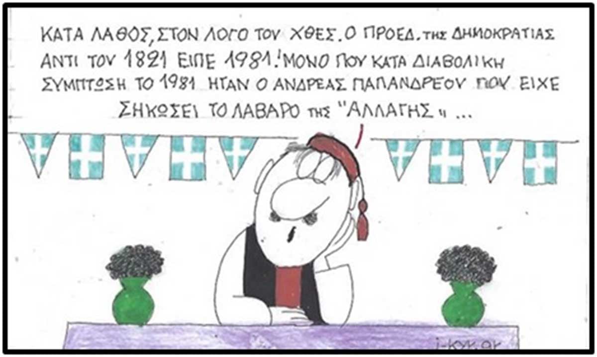 Σημείωση: Ζητώ ταπεινά συγγνώμη, αλλά δεν τα έγραψε εγώ παιδιά. Αλλού τα βρήκα γραμμένα. Άλλοι τα είπαν. Εννοείται ότι αποκηρύσσω μετά βδελυγμίας τα παραπάνω, καθώς και τας παραφυάδας αυτών, παραμένω πιστός στα δημοκρατικά ιδεώδη αμφισβητώ δε σφόδρα και τα πτυχία του κ. Καλύβα (από κάνα εργαστήρι θα τα πήρε…) και τις σπουδές της κυρίας Τριανταφύλλη … Ουφ!