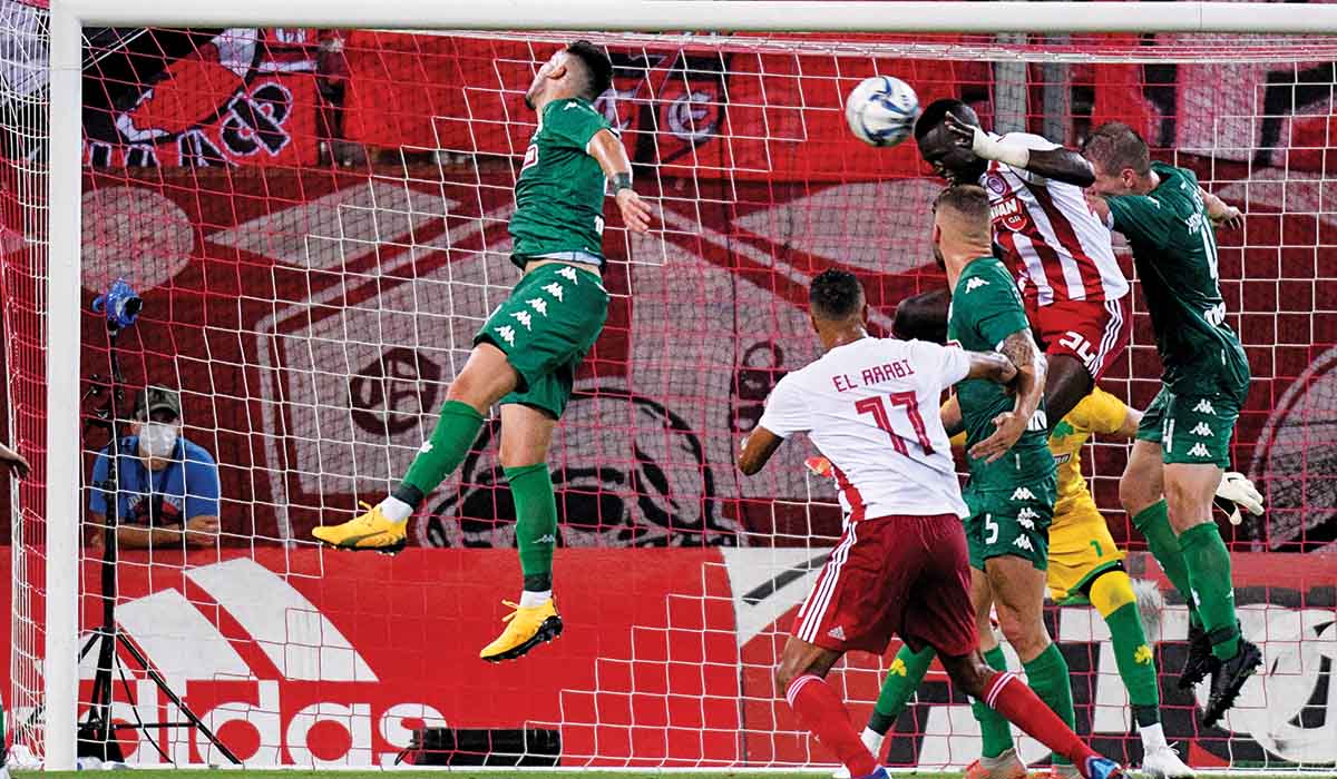Το γρήγορο γκολ υποχρέωσε τους «πράσινους» να ανέβουν μπροστά, έχοντας στο 18΄ μεγάλη ευκαιρία για την ισοφάριση με ψηλοκρεμαστό σουτ εκτός περιοχής από πολύ πλάγια θέση του Χατζηγιοβάνη, το οποίο «απέκρουσε» πάνω στη γραμμή ο Μπα. Τρία λεπτά αργότερα (21΄) συνεργάστηκαν άψογα οι Μπουχαλάκης, Φορτούνης, Ελαμπντελαουί και Ελ Αραμπί, με τον Μαροκινό φορ να κάνει το 2-0 με σουτ στην κίνηση, στη δεύτερη τελική προσπάθεια των Πειραιωτών. Από κει και έπειτα οι γηπεδούχοι έδωσαν χώρο στους αιώνιους αντιπάλους τους, επιδιώκοντας να τους «χτυπήσουν» στην κόντρα. Στο 33΄ ο Σιδηρόπουλος έδειξε την κόκκινη κάρτα στον Χατζηθεοδωρίδη για μαρκάρισμα στον Καμαρά, όμως μετά την εξέταση στο VAR (Κομίνης, Κουρομπύλια) την… πήρε πίσω. Στις καθυστερήσεις του πρώτου ημιχρόνου (45΄+3΄) σπουδαία επέμβαση έκανε ο Διούδης, λέγοντας «όχι» στο σουτ του Λοβέρα.