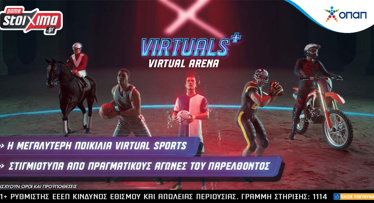 Τα μεγάλα ευρωπαϊκά πρωταθλήματα και οι διασυλλογικές διοργανώσεις έχουν ολοκληρωθεί και η δράση μεταφέρεται στα Virtual Sports. Με περισσότερους από 1.000 αγώνες καθημερινά, η Virtual Arena του Pamestoixima.gr, προσφέρει πολλές στοιχηματικές επιλογές για 21 εικονικά αθλήματα, όπως Virtual ποδόσφαιρο, μπάσκετ, τένις, ιππoδρομίες, κυνοδρομίες, αγώνες φόρμουλας και αγώνες ποδηλάτου.