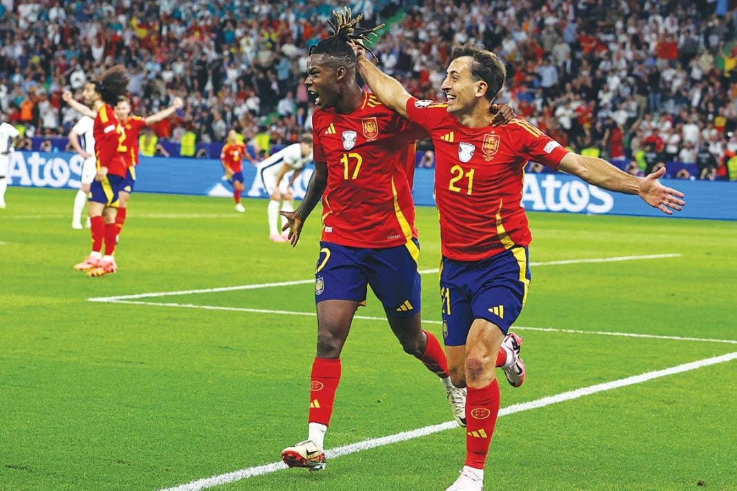 Οι «φούριας ρόχας» είχαν ανούσια κατοχή της μπάλας (66%) και δεν μπόρεσαν να απειλήσουν την εστία του Πίκφορντ. Τα «τρία λιοντάρια» αμύνθηκαν εξαιρετικά, έχοντας μια… υποψία καλής ευκαιρίας με τον Φόντεν στο 45’+1′. Το δεύτερο ημίχρονο άρχισε με αναγκαστική αλλαγή για τον Ντε λα Φουέντε, λόγω προβλήματος του Ρόδρι, όμως οι παίκτες του κατάφεραν να πιάσουν στον ύπνο την αγγλική άμυνα και να προηγηθούν. Με καλή κυκλοφορία της μπάλας και εξαιρετική κάθετη μπαλιά του Γιαμάλ, ο Νίκο Γουίλιαμς άνοιξε με εξαιρετικό αριστερό πλασέ εντός περιοχής το σκορ για την Ισπανία στο 47ο λεπτό. Οι Αγγλοι επηρεάστηκαν από το γκολ που δέχτηκαν και οι Ισπανοί είχαν καλές στιγμές για να διπλασιάσουν τα τέρματά τους με τους Ολμο (49′), Μοράτα (55′), Γουίλιαμς (56′) και Γιαμάλ (66′, σπουδαία επέμβαση του Πίκφορντ).