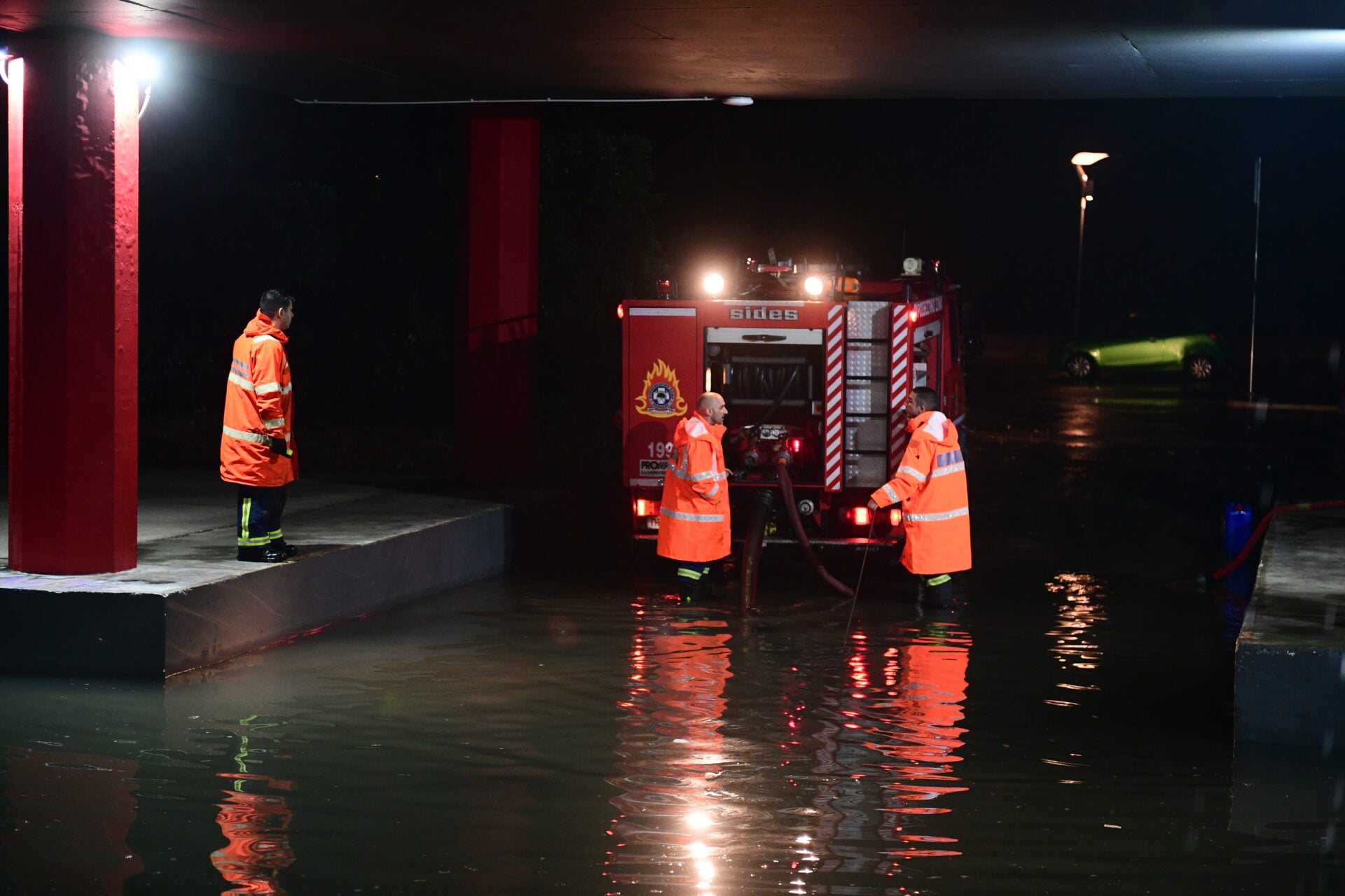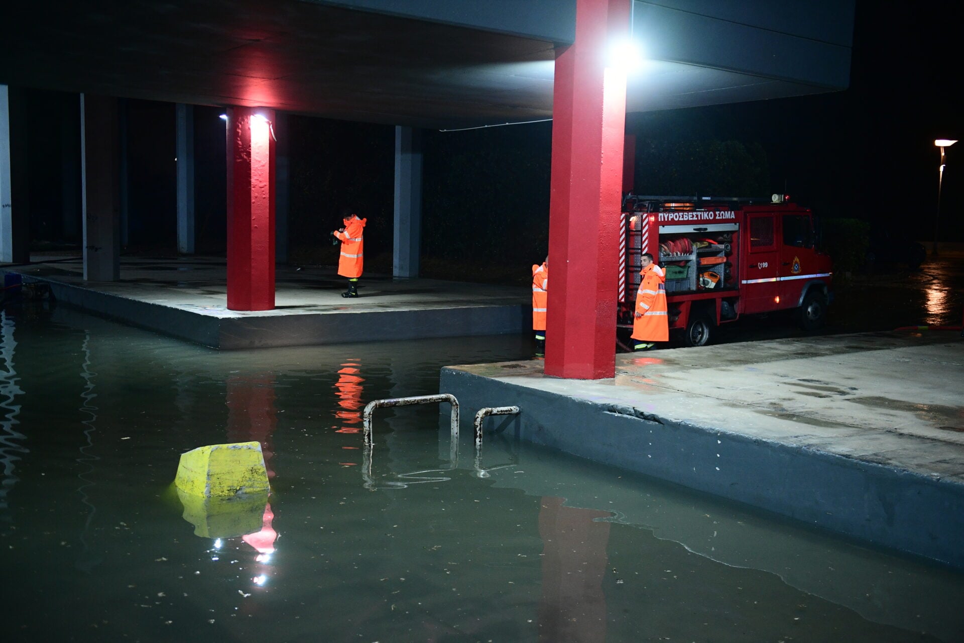 Η σφοδρή νεροποντή προκάλεσε έντονα και στο Στάδιο Ειρήνης και Φιλίας και τα σημεία που έβαζαν νερά στον κεντρικό χώρο καλύφθηκαν με μουσαμάδες.