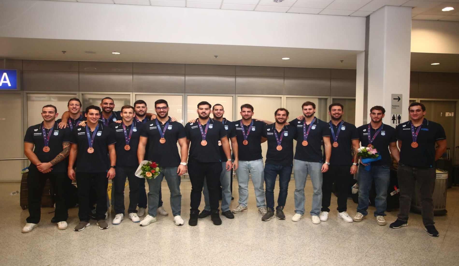 Αμέσως μετά την άφιξη τους στο αεροδρόμιο «Ελευθέριος Βενιζέλος», οι Έλληνες πολίστες γνώρισαν θερμή υποδοχή από συγγενείς, φίλους και εκπροσώπους των ΜΜΕ, ενώ το «παρών» έδωσε και ο Αναπληρωτής Υπουργός Αθλητισμού, Γιάννης Βρούτσης.