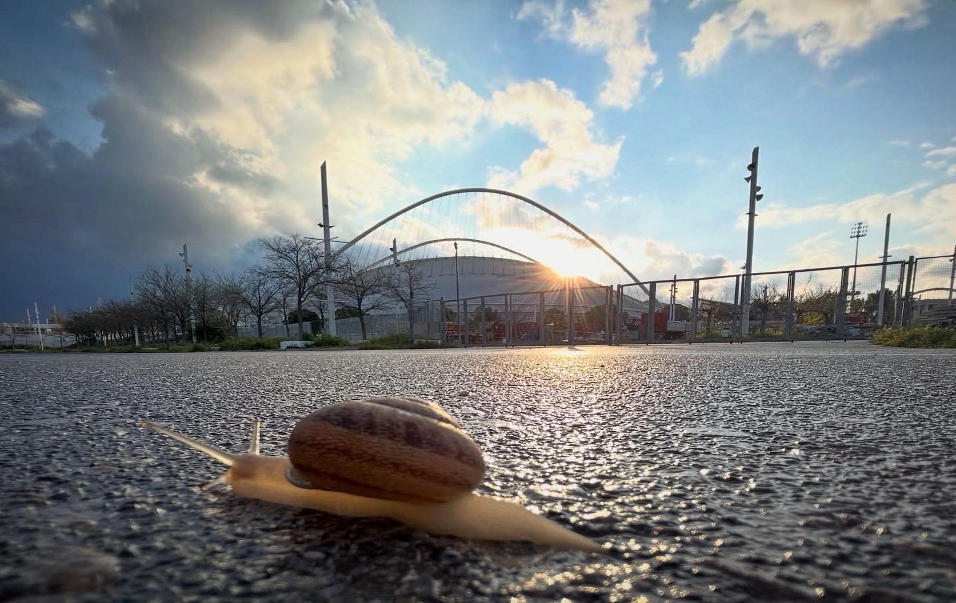Όπως το σαλιγκάρι προχωρά με υπομονή προς τον προορισμό του, έτσι και το ΟΑΚΑ προχωρά σταθερά προς τη νέα του εποχή. Για να αποκτήσει ξανά ο αθλητισμός και ο πολιτισμός το σπίτι τους. Ένα σπίτι που τους αξίζει. Ένα σπίτι που αξίζει σε όλους μας».