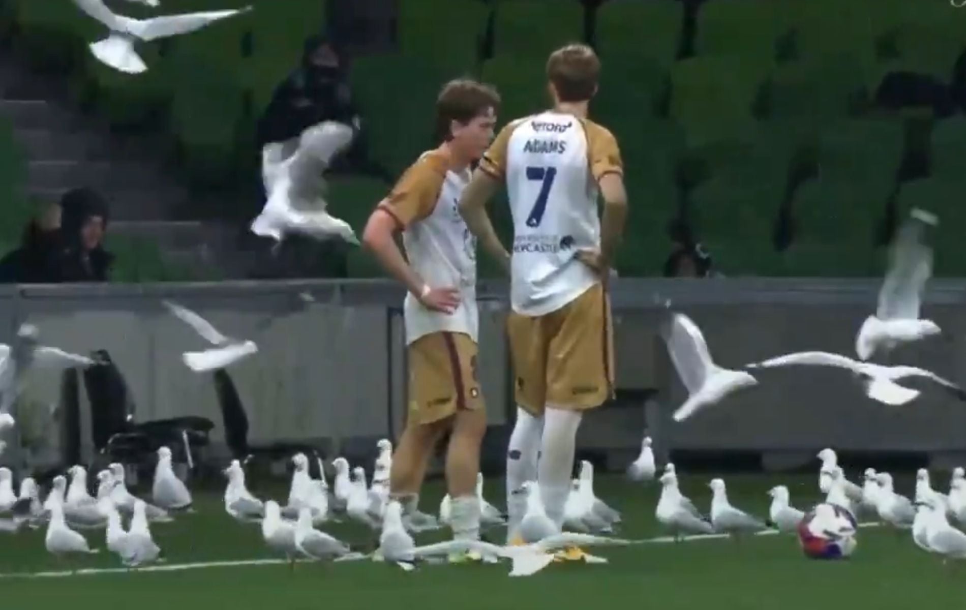 Στο δεύτερο ημίχρονο του αγώνα μεταξύ Μέλμπουρν Βίκτορι και Νιούκαστλ Τζετς (2-2), ένα σμήνος γλάρων εισέβαλε στο γήπεδο.