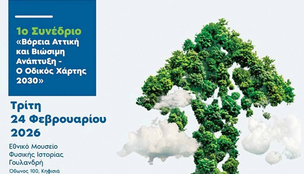 Με στόχο τη διαμόρφωση ενός ρεαλιστικού και εφαρμόσιμου πλαισίου βιώσιμης ανάπτυξης για τη βόρεια Αττική έως το 2030, πραγματοποιείται την Τρίτη 24 Φεβρουαρίου 2026 στο Εθνικό Μουσείο Φυσικής Ιστορίας Γουλανδρή στην Κηφισιά το 1ο Συνέδριο «Βόρεια Αττική & Βιώσιμη Ανάπτυξη – ο Οδικός Χάρτης 2030».