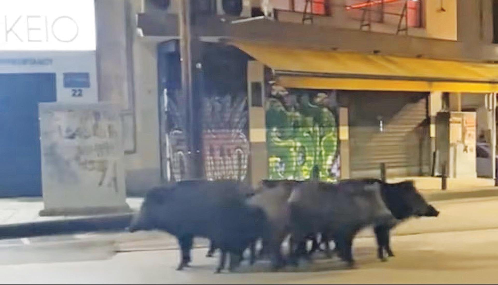 Το θέαμα ξάφνιασε διερχόμενους και θαμώνες της περιοχής, οι οποίοι δεν περίμεναν να αντικρίσουν άγρια ζώα σε ένα τόσο πολυσύχναστο σημείο της πόλης. Τα ζώα κινούνταν χωρίς εμφανή φόβο, γεγονός που εντείνει τις ανησυχίες για την αυξανόμενη παρουσία τους σε κατοικημένες γειτονιές, όπου προκαλούν φόβο και τρόμο. Το φαινόμενο δεν είναι καινούργιο, ωστόσο το τελευταίο διάστημα παρουσιάζει αυξητική τάση, με αγριογούρουνα να εντοπίζονται ολοένα και συχνότερα σε δρόμους, πλατείες ακόμη κι έξω από καταστήματα.