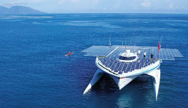 Εναν ξεχωριστό «επισκέπτη» δέχτηκε χθες το λιμάνι της Ζακύνθου. Πρόκειται για το πρωτοποριακό σκάφος «Turanor Planet Solar», το οποίο κινείται χρησιμοποιώντας αποκλειστικά ηλιακή ενέργεια! Το πλήρωμα του μεγάλου ηλιακού καταμαράν, μήκους 32 μέτρων και πλάτους 15 μέτρων, βρίσκεται λίγα… βήματα προτού ολοκληρώσει το εντυπωσιακό ρεκόρ του περίπλου της Γης. Το «μυστικό» του κρύβεται στα φωτοβολταϊκά πάνελ, τα οποία καταλαμβάνουν επιφάνεια άνω του μισού στρέμματος (!) και του επιτρέπουν, δίχως να χρησιμοποιεί άλλο καύσιμο, να κινείται με μέγιστη ταχύτητα τους 14 κόμβους – δηλαδή περί τα 26 χιλιόμετρα την ώρα. Το «Turanor» (σ.σ.: το όνομά του προέρχεται από το μυθιστόρημα του Τόλκιν «Ο άρχοντας των δαχτυλιδιών» και σημαίνει «Η δύναμη του Ηλίου») ξεκίνησε στις 27 Σεπτεμβρίου του 2010 από το Μονακό, και έχει ήδη περάσει από το Γιβραλτάρ, τον Ατλαντικό, το Μαϊάμι, την Αυστραλία, την Ινδία και το Κατάρ. Η Ζάκυνθος, στην οποία «έδεσε» κατά την 558η μέρα του ταξιδιού, αποτελεί τον τελευταίο προορισμό πριν από το Μονακό, στο οποίο… ηλίου επιτρέποντος υπολογίζεται να φτάσει σε 25 ημέρες. «Φτάσαμε στο λιμάνι της Ζακύνθου το απόγευμα. Είμαστε πάλι στην Ευρώπη ύστερα από 19 μήνες και 58.000 χιλιόμετρα ταξιδιού» έγραψαν στο ημερολόγιό τους (www.planetsolar.org) τα έξι μέλη του πληρώματος, που με τον τρόπο αυτό θέλουν να αναδείξουν την πραγματική αξία των εναλλακτικών πηγών ενέργειας.