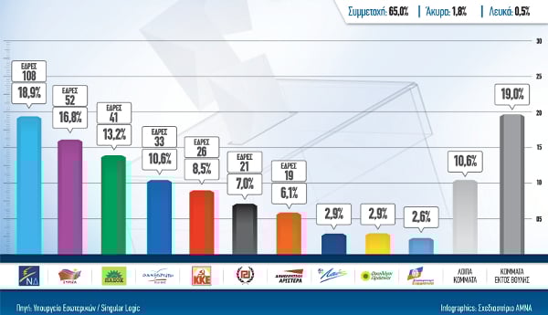 Στην Α΄ Θεσσαλονίκης η Ν.Δ. κέρδισε 6 έδρες και εκλέγει τους Κώστα Καραμανλή, Γιάννη Ιωαννίδη, Κώστα Γκιουλέκα, Σταύρο Καλαφάτη, Ελενα Ράπτη, Γιώργο Ορφανό.