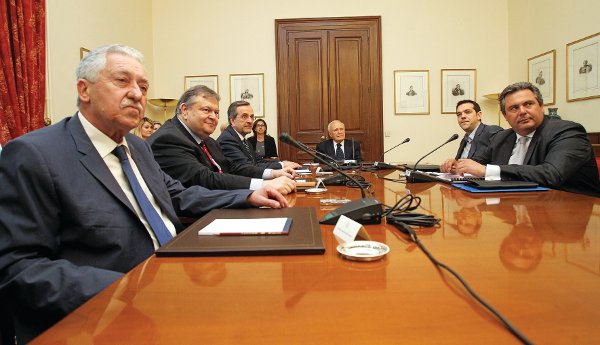 Ενα ναυάγιο που επί της ουσίας είχε προαναγγελθεί χθες στο Προεδρικό Μέγαρο, με τους αρχηγούς να ανταλλάσσουν σκληρές φράσεις και υπονοούμενα, οδήγησε σε οριστικό αδιέξοδο. Τα όσα διημείφθησαν πίσω από τις κλειστές πόρτες του Μαξίμου σε ένα δραματικό δίωρο επιβεβαίωσαν την οριστική ρήξη.
