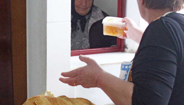 Στο πίσω μέρος του Ιερού Ναού της Ανάληψης οι εθελόντριες ετοιμάζουν φαγητό: «Εχουμε αρκετές προσφορές. Παίρνουμε τρόφιμα και από την Τράπεζα Αγάπης που λειτουργεί στη Θεσσαλονίκη. Οι συμπολίτες μας μπορεί να δυσκολεύονται, αλλά προσφέρουν. Πιο λίγα, αλλά υπάρχει ακόμη αλληλεγγύη». Ο πατέρας Φώτιος Ζαρζαβατσάκης, στην Ενορία της Ανάληψης, μετρά τη φτώχεια σε μερίδες: «Οταν ξεκινήσαμε το 2005 δίναμε 55 μερίδες φαγητό. Τώρα ξεπερνάμε τις 110» λέει.