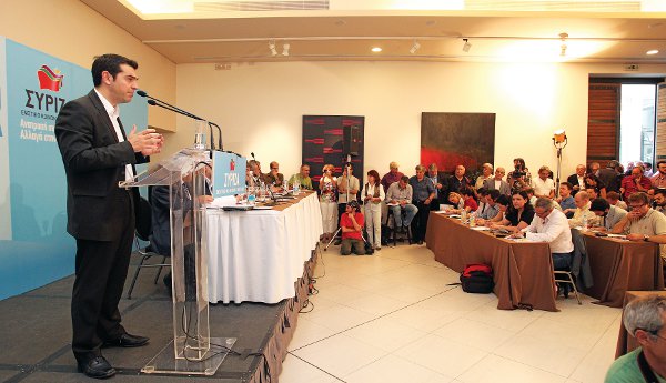 Με το θολό σύνθημα «θα πληρώσουν οι πλούσιοι και όχι οι φτωχοί» (που παραπέμπει σε τακτικές του Ανδρέα Παπανδρέου, σε αντίγραφο του οποίου άλλωστε προσπαθεί να μεταβληθεί) και δίχως την παρουσίαση κοστολογημένων προτάσεων και μετρήσιμων στόχων, ο Αλέξης Τσίπρας ανακοίνωσε χθες το κυβερνητικό πρόγραμμα του ΣΥΡΙΖΑ. Από την κατάμεστη αίθουσα του Πολυχώρου Αθηναΐς στον Βοτανικό και παρουσία διπλωματικών αντιπροσωπιών από την Κούβα και τη Βενεζουέλα, ο πρόεδρος του ΣΥΡΙΖΑ, ύστερα από αλλεπάλληλα πισωγυρίσματα και αντιφάσεις, κήρυξε εκ νέου τον ανένδοτο κατά των δανειστών και της τρόικας, προβάλλοντας για τις εκλογές της 17ης Ιουνίου το υπερφίαλο δίλημμα: «Μνημόνιο ή ΣΥΡΙΖΑ».