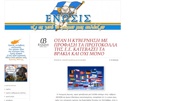 Ο κ. Φτωχόπουλος ερμηνεύει την εμμονή στο πρωτόκολλο ως ακολούθως: «Τώρα, έξυπνοι άνθρωποι είστε, καταλάβατε τι έχει συμβεί. Κάποιος του σφύριξε πως δεν γίνεται οι Ευρωπαίοι υπουργοί να περάσουν κάτω απ’ την ελληνική σημαία για να μπουν μέσα στο Αιγαίον και μετά ν’ αντικρίσουν φωτογραφίες, βιβλία και αφίσες που τα βάζουν με τον Χριστόφια και με το υπόλοιπο κυπριακό συγκρότημα εξουσίας. Νοείται κιόλας πως ειδικά ο υπουργός των Εγγλέζων ΔΕΝ μπορεί να περάσει κάτω από τη φωτογραφία του Αυξεντίου χωρίς να κάνει εμετό. Ούτε είναι σωστό να υπάρχουν φωτογραφίες της εφημερίδας “Ενωσις” με τον Παπαδόπουλο στο πρωτοσέλιδο να λέει ΟΧΙ στο σχέδιο Ανάν, με το οποίο συμφωνούσαν οι σκατοευρωπαίοι».