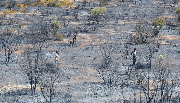 Σύμφωνα με τις πρώτες πληροφορίες περισσότερα από 25.000 στρέμματα δασικής έκτασης έγιναν στάχτη, ενώ τουλάχιστον 15 σπίτια και ένα ιχθυοτροφείο έγιναν παρανάλωμα του πυρός. Πολλές είναι οι ιστορίες πόνου, θλίψης αλλά και οργής που «ξεπηδούν» μέσα από τα καμένα, δύο από αυτές, ωστόσο, ξεχωρίζουν. Η πρώτη αφορά το σπίτι της οικογένειας Γιαννικέλη στη Συντερίνα, το οποίο καταστράφηκε ολοσχερώς (την τελευταία στιγμή, μάλιστα, απομακρύνθηκαν από εκεί τα δύο μικρά παιδιά ηλικίας τεσσάρων και έξι ετών αντίστοιχα), ενώ οι ιδιοκτήτες του είναι εδώ και περίπου ενάμιση χρόνο άνεργοι. Η δεύτερη περίπτωση αφορά το ιχθυοτροφείο του Αντώνη Σταύρου, που είδε τις χερσαίες εγκαταστάσεις της επιχείρησής του να μετατρέπονται σε αποκαΐδια και τη ζημιά να υπερβαίνει τα 100.000 ευρώ!