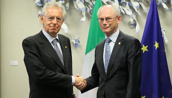 Ο τεχνοκράτης Ιταλός πρωθυπουργός, που υπερασπίστηκε με τον καλύτερο δυνατό τρόπο το μέλλον της χώρας του και της Ε.Ε., δήλωσε ότι δεν θα υπογράψει το πακέτο ούτε θα φύγει από τη Σύνοδο εάν δεν βρεθεί μια αποφασιστική λύση ώστε να σταματήσει η χώρα του να δανείζεται με υπέρογκα επιτόκια. Ακολούθησε αντίστοιχη δήλωση από τον Ισπανό πρωθυπουργό Μαριάνο Ραχόι. Εκείνο που δεν έγινε άμεσα γνωστό όμως είναι ότι ο Μόντι απείλησε ως και με παραίτηση εάν οι ηγέτες δεν κατέληγαν σε ουσιαστική συμφωνία.