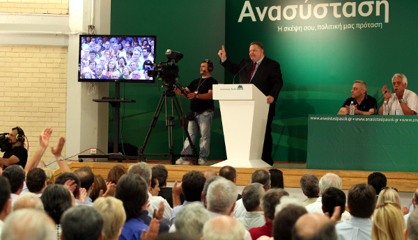 Κηρύσσοντας την έναρξη της ανασύστασης του ΠΑΣΟΚ στην πορεία προς το Συνέδριο του Νοεμβρίου, διά της… αυτοοργάνωσης, επιχείρησε να κλείσει το θέμα της αλλαγής ονόματος. «Είμαστε περήφανοι για το όνομα και τα σύμβολά μας». Εξαφανίζοντας από τον λόγο του την Κεντροαριστερά και επιτιθέμενος εκ νέου στον ΣΥΡΙΖΑ, απευθύνθηκε στις πολιτικές δυνάμεις που κινούνται στον ίδιο χώρο. «Τους καλούμε να ανοίξουμε άμεσα έναν έντιμο, ισότιμο, προγραμματικό και πολιτικό διάλογο, αξιοποιώντας τη θετική εμπειρία άλλων χωρών, όπως αυτή της ΕΛΙΑΣ στην Ιταλία» είπε, υπονοώντας συνεργασία, αλλά με διατήρηση της ταυτότητας κάθε κόμματος. Πιο προωθημένη ήταν η πρόταση του γραμματέα της ΔΗΜ.ΑΡ. Σπ. Λυκούδη, ο οποίος, χαιρετίζοντας, μίλησε για ανάγκη που έχει η χώρα από μία μεγάλη παράταξη της Αριστεράς και του Δημοκρατικού Σοσιαλισμού. «Αλλάξτε, γίνετε το κάτι άλλο και είμαστε εδώ» είπε ο εκπρόσωπος των Οικολόγων Γ. Λυρατζάς.
