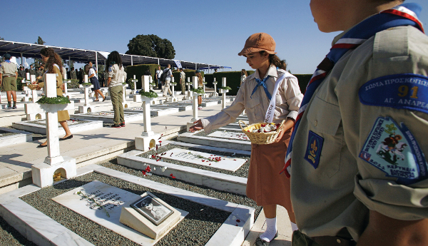 Στην Κύπρο χθες τελέστηκε επιμνημόσυνη δέηση από τον Αρχιεπίσκοπο Χρυσόστομο στο στρατιωτικό κοιμητήριο στον Τύμβο της Μακεδονίτισσας υπέρ αναπαύσεως των ψυχών των πεσόντων αξιωματικών και οπλιτών από την Κύπρο και την Ελλάδα.
