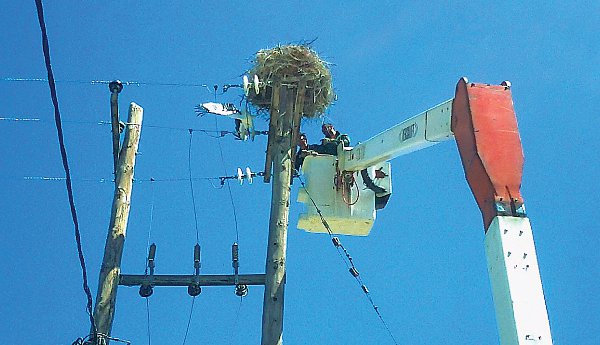 Ολα εξελίσσονταν κανονικά ώσπου ο «χτίστης» πελαργός… αυτοπαγιδεύτηκε στα σχοινιά που είχε μεταφέρει στη φωλιά του. Τα φτερουγίσματα και τους κρότους του ράμφους του άκουσαν περαστικοί, οι οποίοι ειδοποίησαν την Πυροσβεστική, παρακολουθώντας το πτηνό να χτυπιέται κοντά στα ηλεκτροφόρα καλώδια.