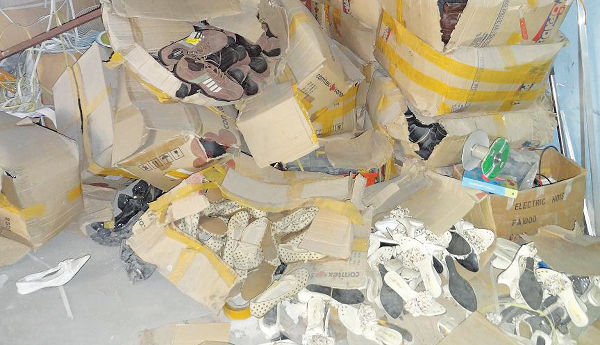 Στο πλαίσιο της επιχείρησης με την κωδική ονομασία «Ξένιος Ζευς», αστυνομικοί έκαναν παράλληλα έφοδο σε αποθήκη έκτασης 800 τ.μ. στον Βοτανικό και εντόπισαν πάνω από 1.000.000 παπούτσια «μαϊμού»! Η αποθήκη βρίσκεται στη συμβολή των οδών Αγίου Πολυκάρπου και Παπαμακαρίου και μέχρι αργά το απόγευμα ήταν σφραγισμένη, καθώς συνεχιζόταν η καταμέτρηση των προϊόντων – απομιμήσεων αυθεντικών ειδών.