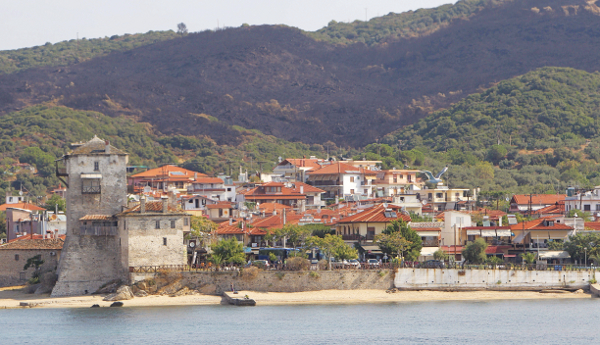 Η καταγάλανη θάλασσα, μια συστάδα πράσινες ελιές και από πίσω κρανίου τόπος. Η εικόνα που αντικρίζει ο επισκέπτης στον Αθω λίγες μέρες μετά την καταστροφική φωτιά σοκάρει. Το καταπράσινο δάσος, που δέσποζε κάποτε πίσω από την Ουρανούπολη, είναι σήμερα αποκαΐδια, μαυρισμένοι κορμοί και κουφάρια δέντρων.