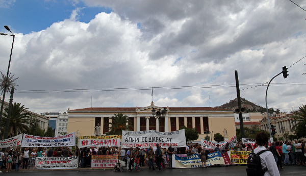 Κομφούζιο προκλήθηκε χθες στο κέντρο της Αθήνας από το συλλαλητήριο που πραγματοποίησαν, με αφετηρία τα Προπύλαια, δάσκαλοι και καθηγητές, το οποίο ολοκληρώθηκε το απόγευμα χωρίς προβλήματα. Οι εκπαιδευτικοί προχώρησαν σε απεργία τη δεύτερη μέρα της νέας σχολικής χρονιάς, σε ένδειξη διαμαρτυρίας για τις περικοπές στους μισθούς τους και για τις λειτουργικές δυσκολίες που αντιμετωπίζουν τα σχολεία. Στην κινητοποίηση συμμετείχε και η Ομοσπονδία Ιδιωτικών Εκπαιδευτικών Λειτουργών Ελλάδος (ΟΙΕΛΕ), η οποία είχε κηρύξει 24ωρη απεργία χθες, καθώς και η ΑΔΕΔΥ και οι νοσοκομειακοί γιατροί, οι οποίοι απείχαν από τα καθήκοντά τους.