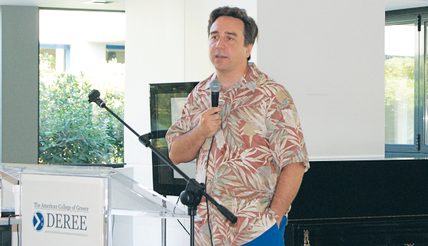 «Φανταστείτε ότι 350.000.000 φωτογραφίες ανεβαίνουν την ημέρα, τεράστιες ποσότητες. Οπότε, βλέπω συνεχώς ποια είναι η τελευταία τεχνολογία σε εικόνα και σε βίντεο, και τη μεταφέρω μέσα στο facebook, με κώδικα που τρέχει πιο γρήγορα απ’ όσο τρέχει εκτός facebook» εξηγεί ο μηχανικός λογισμικού που πραγματοποίησε ομιλία στο κολέγιο DEREE με τίτλο «Πορτρέτο του επιστήμονα ως ενός Ελληνα μεσήλικα: 15 χρόνια επιχειρηματικότητας στις ΗΠΑ».