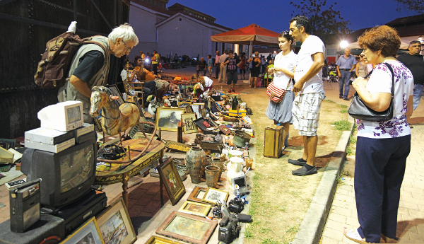 Στο πρωτότυπο αυτό παζάρι της Τεχνόπολης βρέθηκε και ο κ. Βασίλης Πισιμίσης, ρακοσυλλέκτης και συγγραφέας δύο βιβλίων. Ενα για το ρολόι του Πειραιά και ένα για τον υπόκοσμο της Τρούμπας και των Βούρλων, μια και ως Πειραιώτης είχε ήδη συλλέξει αρκετά ντοκουμέντα για την πόλη του. «Είμαι συλλέκτης 30 χρόνια και επαγγελματικά ασχολούμαι με αυτό τα τελευταία 10. Παλιά ασχολούμουν με τα έπιπλα και αυτό το είχα σαν χόμπι, τώρα, ένεκα και της κρίσης, έγινε αναγκαίο» λέει. Η πραμάτεια του περιλαμβάνει κυρίως ιστορικά και συλλεκτικά αντικείμενα. Κάδρα του Ιωάννη Μεταξά, των μελών της βασιλικής οικογένειας, κορόνες και… φοίνικες βρίσκονται διάσπαρτα στον πάγκο του δίπλα σε παλιά σπαθιά, κέρματα και βιβλία γραμμένα στην καθαρεύουσα.