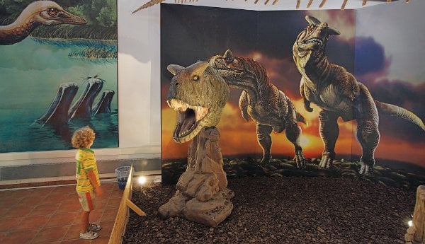 Ανά μία ώρα προβάλλεται σε γιγαντοοθόνη ένα 40λεπτο ντοκιμαντέρ, που εξηγεί γιατί οι μικροί δεινόσαυροι «μεταμορφώθηκαν» σε… πέρδικες, σπουργίτια, καναρίνια και αρπακτικά πουλιά και καταρρίπτει αρκετούς μύθους σχετικά με την εξέλιξη, τα χαρακτηριστικά και την εξαφάνιση των δεινοσαύρων. Τα μικρά παιδιά μπορούν να ψάξουν για απολιθώματα δεινοσαύρων σε ειδικά διαμορφωμένο σκάμμα, να ζωγραφίσουν και να παίξουν σε ηλεκτρονικούς υπολογιστές, αλλά και να αισθανθούν για λίγο σαν μικρά δεινοσαυράκια μέσα σε αβγά.