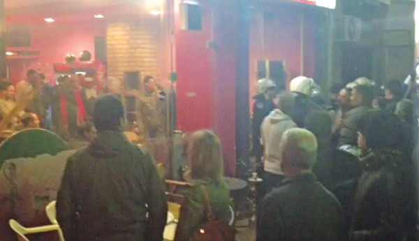 Σε ανύποπτη στιγμή ομάδα αλλοδαπών -παρά την αστυνομική παρουσία-, οπλισμένη με ρόπαλα, μεταλλικές ράβδους και σπασμένα μπουκάλια, επιτέθηκε στους διαδηλωτές. Η κατάσταση ξέφυγε. Μπουλούκι νεαρών «κουκουλοφόρων» που είχε ενσωματωθεί στην πορεία εφόρμησε σε αραβικό εστιατόριο στο κάτω μέρος της πλατείας Αγίου Νικολάου, αναποδογύρισε τα τραπεζοκαθίσματα και τα έκανε γυαλικά καρφιά. Επί τόπου συνελήφθησαν τέσσερις αλλοδαποί για οπλοκατοχή.