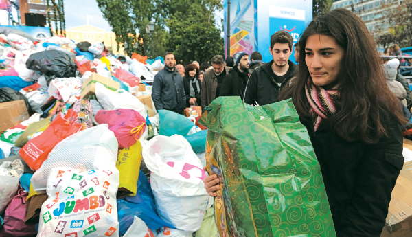 Εναν πολύχρωμο… λόφο αλληλεγγύης και προσφοράς προς τις χιλιάδες άπορες οικογένειες που υποστηρίζει ο Κόμβος Αλληλοβοήθειας Πολιτών (τμήμα της κοινωνικής μέριμνας του Δήμου Αθηναίων) δημιούργησαν χθες οι κάτοικοι και οι επισκέπτες της Αθήνας, που κατέβηκαν στην καρδιά της πόλης προκειμένου να δώσουν ελπίδα στους ανθρώπους που περνούν τις μέρες των εορτών χωρίς… λάμψη και χαμόγελα, αλλά με αγωνία για το μέλλον τους.