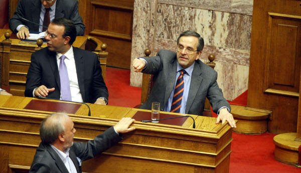 Σε κλίμα έντασης ξεκίνησε χθες η συζήτηση, με τις πρώτες φιτιλιές να βάζει ο κοινοβουλευτικός εκπρόσωπος του ΣΥΡΙΖΑ Παναγιώτης Λαφαζάνης, ο οποίος υποστήριξε ότι η διαδικασία των Πράξεων Νομοθετικών Περιεχομένου «δεν αφήνει τίποτα όρθιο από το Σύνταγμα και τον Κανονισμό της Βουλής» και ότι αυτές οι διαδικασίες «δεν παράγουν κανένα έννομο αποτέλεσμα, είναι διάτρητες». Η αναφορά του προκάλεσε την αντίδραση της Σοφίας Βούλτεψη, η οποία σε έντονο ύφος απάντησε: «Ακουσα ότι είμαι περίπου πραξικοπηματίας. Είμαι ίσως όμως το μοναδικό παιδί που το πρωί της 21ης Απριλίου ξύπνησα με το περίστροφο στην πλάτη». Τη φωτοτυπία ενός χαρτονομίσματος της Ζιμπάμπουε παρουσίασε ο κοινοβουλευτικός εκπρόσωπος της Ν.Δ. Μάκης Βορίδης, ο οποίος παράλληλα κατηγόρησε τον ΣΥΡΙΖΑ ότι σηκώνει αυτήν τη συζήτηση, για να δημιουργήσει θόρυβο και πλαστές εντυπώσεις στον ελληνικό λαό. Αντίστοιχα, ο κοινοβουλευτικός εκπρόσωπος του ΠΑΣΟΚ Μιχάλης Χρυσοχοΐδης σημείωσε ότι επιδίωξη της Ελλάδας είναι να πληρώσει το χρέος της, το οποίο μετά το «κούρεμα» έχει μειωθεί και θα μειωθεί και στο μέλλον.