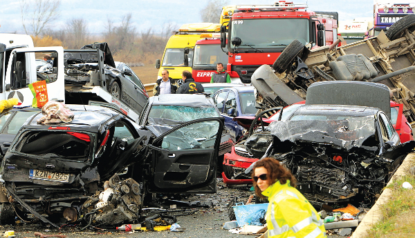 Οι σκηνές έμοιαζαν βγαλμένες από κινηματογραφική ταινία. Αυτοκίνητα αναποδογυρισμένα, το ένα επάνω στο άλλο ή «πεταμένα» στη διαχωριστική νησίδα συνέθεταν την εικόνα που αντίκρισαν τα σωστικά συνεργεία όταν έσπευσαν για τον απεγκλωβισμό των τραυματιών. Σκηνές γνώριμες στην κεντρική Ευρώπη ή την Αμερική, πρωτοφανείς όμως για την Ελλάδα.