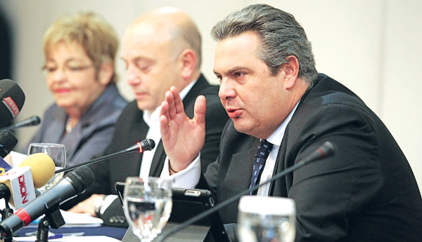 Κατά τα λοιπά, στο χθεσινό προσυνέδριο ο κ. Καμμένος επιτέθηκε και στα τρία κόμματα που στηρίζουν την κυβέρνηση, ζήτησε από τον ελληνικό λαό να διώξει τη σημερινή κυβέρνηση και τους επίτροπους από τα υπουργεία και να κηρύξει «ανεπιθύμητους» τους κ. Ράιχενμπαχ, Τράα και Φούχτελ. «Θεωρώ ότι θα δημιουργηθεί ένα μεγάλο δημοκρατικό και πατριωτικό μέτωπο δυνάμεων, που μπορεί να αναλάβει τη διακυβέρνηση της χώρας, για να φύγει η σημερινή κυβέρνηση μαζί με τους επιτρόπους των υπουργείων» επισήμανε.