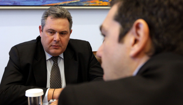Το πολύμηνο «ειδύλλιο» μεταξύ του ΣΥΡΙΖΑ και των Ανεξάρτητων Ελλήνων επισημοποιήθηκε κατά τη διάρκεια της συνάντησης των δύο αρχηγών τους. Η συνεργασία σε πολιτικό επίπεδο του Αλέξη Τσίπρα με τον Πάνο Καμμένο αναμένεται να «εγκαινιαστεί» τις επόμενες ημέρες, καθώς οι δυο τους έχουν συμφωνήσει να συνυπογράψουν κοινό αίτημα για την κλήση του επικεφαλής της Τραπέζης της Ελλάδος Γιώργου Προβόπουλου σε έκτακτη συνεδρίαση στην Επιτροπή Οικονομικών της Βουλής, προκειμένου να δώσει εξηγήσεις γιατί αρνήθηκε να βοηθήσει την Κύπρο σε αντιστάθμισμα των ζημιών που υπέστη από το PSI.