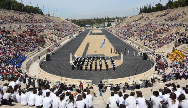 Με τους χρυσούς ολυμπιονίκες Πύρρο Δήμα, Σοφία Μπεκατώρου, Δημοσθένη Ταμπάκο, Βούλα Πατουλίδου, Στέλιο Μυγιάκη, Θωμά Μπίμη και 30 ακόμα ολυμπιονίκες και παγκόσμιους πρωταθλητές, αλλά και με τη συμμετοχή χιλιάδων μαθητών και μαθητριών από σχολεία ολόκληρης της Ελλάδας, πραγματοποιήθηκε χθες, Παρασκευή, στις 11.00, στο Παναθηναϊκό Στάδιο,, η αναβίωση των Ολυμπιακών Αγώνων του 1896.