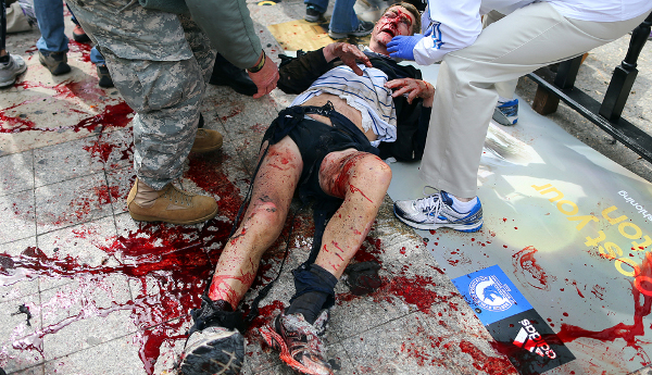 Συγκλονιστικές ήταν και οι μαρτυρίες των ανθρώπων που πρόσφεραν τις πρώτες βοήθειες στη «βομβαρδισμένη από τον τρόμο» Μπόιλστον Στριτ της Βοστόνης, ενώ και οι γιατροί στα νοσοκομεία της πόλης ζούσαν μια κατάσταση «πρωτοφανή για ολόκληρη τη Μασαχουσέτη». «Τα νοσοκομεία θύμιζαν καιρό πολέμου» δήλωναν χειρουργοί την ώρα που οι δεκάδες σοβαρά τραυματισμένοι συμπολίτες τους διακομίζονταν στα νοσηλευτικά ιδρύματα. «Είναι πραγματικά θλιβερό να σκέφτεσαι ότι κάποιος ή κάποιοι άνθρωποι σχεδίασαν όλο αυτό το μακελειό» σχολίαζε ο γιατρός Πίτερ Φάγκενχολζ από το Γενικό Νοσοκομείο Μασαχουσέτης, εξηγώντας ότι «ποτέ στην καριέρα μου δεν έχω αντικρίσει ξανά κάτι ανάλογο».