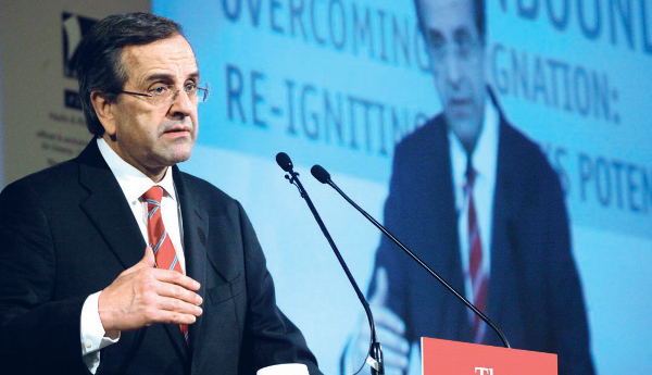Με νέες ενέσεις αισιοδοξίας για το μέλλον του τόπου ο Αντώνης Σαμαράς επιχείρησε χθες να αναστρέψει το δυσμενές κλίμα στην κοινωνία, κατά την ομιλία του στο συνέδριο του Economist. Ο πρωθυπουργός, σε συνέχεια της προχθεσινής δήλωσής του, τόνισε εκ νέου ότι «δεν ξεπεράσαμε ακόμα την κρίση, αλλά το φως αρχίζει να φαίνεται στην άκρη του τούνελ». «Πριν από έναν χρόνο», σημείωσε, «η Ελλάδα θεωρούνταν ο αδύναμος κρίκος της Ευρώπης, ενώ σήμερα δεν θεωρείται “Ιφιγένεια” από κανέναν». Αναγνώρισε ότι «κάποιοι πραγματικά υποφέρουν άδικα», ωστόσο, όπως είπε, τα πράγματα θα αλλάξουν, αφού «ήδη πιάνουμε τους στόχους μας για να βγούμε από την κρίση, να πάρουμε τη χώρα και τη μοίρα στα χέρια μας». «Δεν θα ζούμε πάντα με Μνημόνια, δεν θα ζούμε πάντα με δανεικά» υποστήριξε. Προανήγγειλε μάλιστα σύγκρουση με εκείνους που αντιδρούν γιατί «είχαν βολευτεί σε ένα σύστημα παρασιτικό και τώρα ξεβολεύονται και πολεμάνε κάθε αλλαγή». Μιλώντας εκ μέρους και των άλλων δύο πολιτικών αρχηγών, υπογράμμισε ότι «ξέρουμε πολύ καλά και τις δυσκολίες και τα ρίσκα που έχουμε πάρει, δεν μας αρέσουν τα μεγάλα λόγια, προχωράμε βήμα βήμα, αλλά και χωρίς δισταγμούς». Αναφερόμενος στις αποχωρήσεις από το Δημόσιο, είπε ότι το προσωπικό του μειώνεται «σταδιακά και ομαλά, με τον κανόνα μία νέα πρόσληψη για κάθε πέντε συνταξιοδοτήσεις, αλλά στο μεταξύ βελτιώνουμε ποιοτικά το κράτος απομακρύνοντας αμέσως επίορκους ή κοπανατζήδες ή προσωπικό από οργανισμούς που καταργούνται γιατί δεν θα έπρεπε να υπάρχουν». Επίσης, για όλους τους φορολογικούς συντελεστές, της εστίασης αλλά όχι μόνο αυτής, υποστήριξε ότι πρέπει να μειωθούν, μετά τη σταθεροποίηση των πρωτογενών πλεονασμάτων.
