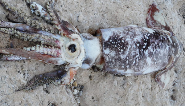 Ενα καλαμάρι-γίγα εντόπισαν δύτες της Μήλου στην περιοχή της Πελεκούδας! Οπως ανέφερε ο Γιώργος Γρίσπος που το ανέσυρε, το καλαμάρι ήταν μήκους 1,5 μέτρου και βάρους περίπου επτά κιλών! Καθώς η ανεύρεση του εντυπωσιακού μαλάκιου (φωτο: Milos Diving Center – Ιωάννης Χαβάκης) προκάλεσε το έντονο ενδιαφέρον των κατοίκων του νησιού -και όχι μόνο- αποφασίστηκε τμήματα του καλαμαριού να σταλούν σε ειδικά ινστιτούτα, προκειμένου να διαπιστωθεί το ακριβές είδος και εάν επρόκειτο για επισκέπτη ή… μόνιμο κάτοικο Αιγαίου.