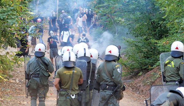 Αντιμέτωποι με τα ΜΑΤ βρέθηκαν χθες το πρωί στον Κάκαβο περίπου 40 κάτοικοι της βορειοανατολικής Χαλκιδικής, που αντιδρούν στην επένδυση χρυσού στην περιοχή τους. Η πρωινή τους εξόρμηση είχε ως στόχο την… αυτοψία για τις εργασίες υλοτόμησης της Ελληνικός Χρυσός στο ρέμα του Καρατζά, οι οποίες ξεκίνησαν και πάλι χθες, έπειτα από το διάλειμμα των εορτών. Η ομάδα των 40 ατόμων βρέθηκε ξαφνικά απέναντι σε δυνάμεις των ΜΑΤ, που σταμάτησαν τους αντιδρώντες περίπου 2 χλμ. από τον Καρατζά, στη θέση Σπίτι Καλύβα. Οι κάτοικοι προσπάθησαν να σπάσουν το μέτωπο, δημιουργήθηκε ένταση και οι αστυνομικές δυνάμεις τούς απώθησαν. Οι κάτοικοι υποστηρίζουν ότι η εταιρία δεν έχει τις απαιτούμενες άδειες για τις εργασίες που υλοποιεί στην περιοχή και θεωρεί ότι, όσο το σκηνικό δεν ξεκαθαρίζει, προκαλούνται μη αναστρέψιμες καταστροφές στο δάσος. Από την πλευρά της η εταιρία τονίζει ότι διαθέτει όλες τις άδειες και δεν υπάρχει τίποτα που να εκκρεμεί.