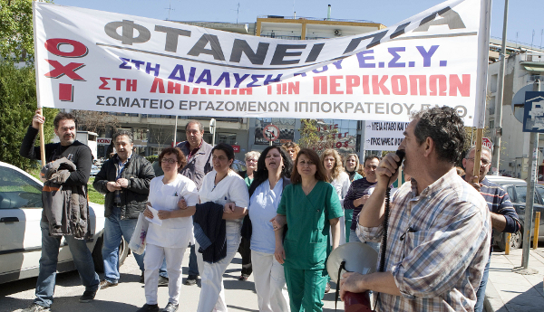 Οι γιατροί χαρακτηρίζουν τραγική την κατάσταση των δημόσιων θεραπευτηρίων, λόγω έλλειψης προσωπικού, το οποίο συνολικά υπολογίζουν περί τους 6.500 γιατρούς στα νοσοκομεία και τα Κέντρα Υγείας και 10.000 στον Εθνικό Οργανισμό Παροχής Υπηρεσιών Υγείας (ΕΟΠΥΥ), με αποτέλεσμα την υποβάθμιση των παρεχόμενων υπηρεσιών.